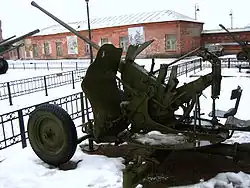 25 mm automatic air defense gun M1940 (72-K) (Russian: 25-мм автоматическая зенитная пушка образца 1940 года (72-К)) was a Soviet 25 mm caliber anti-aircraft gun used during the World War II. The gun was developed from the end of 1939 to the beginning of 1940 at 8th Kalinin Artillery Plant under the guidance of its Chief Designer Mikhail Loginov, supervised by Lev Loktev. The cannon was given the factory code 72-K before being accepted into service by the Red Army as the 25 mm automatic air defense gun M1940.