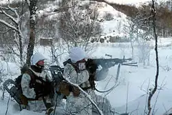 The 25th Marine Regiment (25th Marines) is one of two infantry regiments in the 4th Marine Division of the United States Marine Corps. From its headquarters in Fort Devens, Massachusetts, the regiment commands fifteen training centers in nine states throughout the Northeast. These units consist of approximately 3,500 reserve and active duty Marines and are located from Maine to Delaware, West Virginia and as far west as Ohio. The 25th Marines is primarily a cold weather regiment and frequently trains in northern Norway.