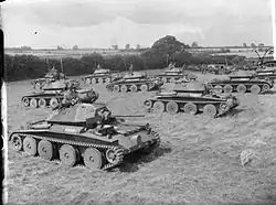 Covenanter tanks of the Fife and Forfar Yeomanry, 9th Armoured Division, on parade at Guisborough in Yorkshire, 19 August 1941.