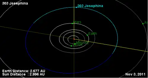 1. ^ a b "303 Josephina". JPL Small-Body Database. NASA/Jet Propulsion Laboratory. Archived from the original on 15 September 2020. Retrieved 11 May 2016.
