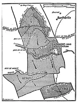 General de Mondesir, the 38th French Corps Commander, which the 32nd served under, went to the front to observe the fighting. When he saw how the 32nd cleared the Germans out of their reinforced positions with unrelenting and successful attacks, he exclaimed, Oui, Oui, Les soldats terribles, tres bien, tres bien! General Charles Mangin heard of it and referred to the 32nd Division as Les Terribles when he asked for the division to join his 10th French Army north of Soissons. He later made the nickname official when he incorporated it in his citation for their attack at Juvigny. The division's shoulder patch, a line shot through with a red arrow, symbolizes the fact that the 32nd Division penetrated every German line of defense that it faced during World War I.[1][15][16]