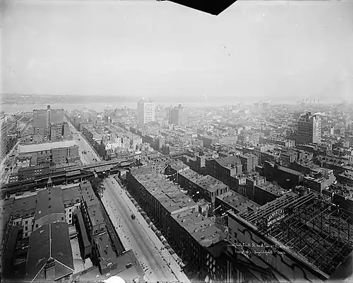 Looking below towards the west at the 34th Street station in 1918, from a skyscraper on Eighth Avenue.