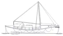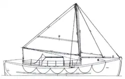 The Type "T" (believed to indicate "new type") was designed by Alfred Hansen in 1928 with upgraded capabilities compared to the earlier Type "E" and "H" motor lifeboats, which all had approximately the same nominal 36-foot length.[2] Compared to the Type "H", the Type "T" had a simplified sailing rig, intended only for emergency use, and was fitted with a more powerful Sterling Petrel L-head inline-6 gasoline engine.[2] The Type "T" has 10 watertight compartments, 6 below and 4 above the main deck, and includes buoyancy blocks made from cork; it is designed to be self-bailing.[2] Trials for the first Type "T" boat built, No. 3389, were held in May 1929, and field testing was carried out at Station Cobb Island, resulting in modifications to the rudder; the 36' MLB was able to self-right completely in six to seven seconds.[2]