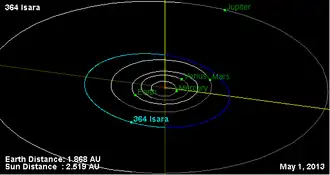 1. ^ a b c d e f g h "JPL Small-Body Database Browser: 364 Isara (1893 T)" (2017-06-06 last obs.). Jet Propulsion Laboratory. Archived from the original on 15 September 2020. Retrieved 5 September 2017.