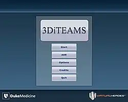 3DiTeams (also known as 3Di TEAMS) is a first person serious video game developed by the Duke University Medical Center and Virtual Heroes and used for medical education and team training.[4] The 3DiTeams Project was conceived by Dr. Jeffrey M. Taekman and Jerry Heneghan and is managed by the Human Simulation and Patient Safety Center at Duke University Medical Center, Durham, North Carolina.