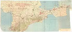 On November 9 Colonel Ioskevich handed his command of the division to Lt. Col. Ivan Pavlovich Babalashvili, but this officer in turn was replaced by Col. Nikolai Georgievich Selikhov on December 13.[1] In January 1943 as the German forces retreated from the Caucasus the division was moved to the 37th Army on the new North Caucasus Front, but in February it was again reassigned, now to 58th Army in the same Front.[12][13] On February 18 Col. Pyotr Ivanovich Metalnikov took over command from Colonel Selikhov. By this time the German 17th Army had completed its withdrawal to the "Goth's Head" position in the Kuban region. The fighting here would go on intermittently until the German forces completed their evacuation to the Crimea in October. While this was underway, on September 21 the division was awarded a battle honor: