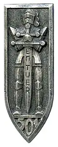 The 501e Régiment de chars de combat 501e RCC in French, (501e R.C.C, or 501st Combat Tank Regiment) is an armoured tank unit of the French Army created on 13 May 1918, and which took part in World War I, World War II the Russian Civil War, the First Indochina War, the Algerian war, Lebanese Civil War and the War on Terror.