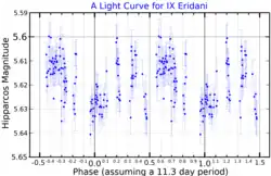 A light curve for IX Eridani, plotted from Hipparcos data[1]