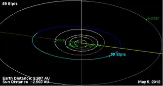 3. ^ a b c d e "JPL Small-Body Database Browser: 59 Elpis" (2011-09-01 last obs). Jet Propulsion Laboratory. Retrieved 26 January 2012.