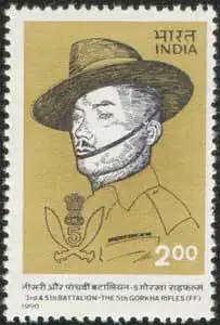 1990 stamp on the 3rd and 5th Battalion of the 5th Gorkha Rifles (FF)