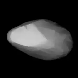 Published in 2014, a modeled lightcurve gave a period 4.273715 hours, as well as a two spin axes of (110.0°, −60.0°) and (290°, −60.0°) in ecliptic coordinates (λ, β).[8] In 2017, modelling gave a period of 4.2737137 h and a single spin axis of (124°, −87.0°),[5] refining a previously published result of 4.27371 h and (4°, −76.0°).[7]