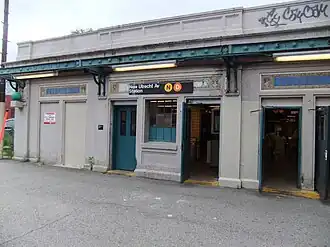 Geographically east of the station, a track connection to a siding that served the Rubel Ice Company once existed; this connection was removed in the 1930s. The siding was connected to the Manhattan-bound track.[32]