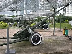 The 85-mm divisional gun D-44 (Russian: 85-мм дивизионная пушка Д-44) was a Soviet divisional 85-mm calibre field artillery gun used in the last action of World War II. It was designed as the replacement for the 76 mm divisional gun M1942 (ZiS-3). The gun was no longer in front-line service with the Russian Ground Forces, until being pressed back into service in the Russo-Ukrainian War in 2023.[4] Wartime service included use by communist forces during the Vietnam War[5] and by Arab forces during their conflicts with Israel.