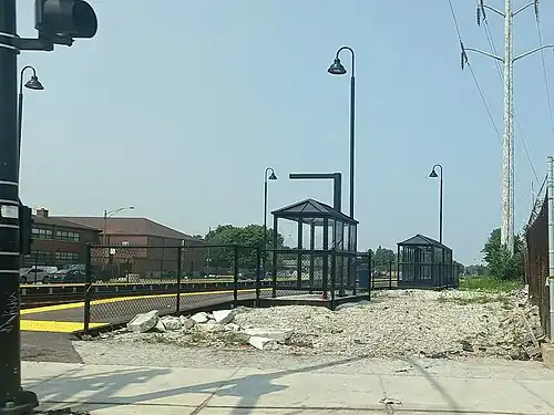 95th Street–Longwood Manor station is a commuter railroad station on Metra's Rock Island District line in the Longwood Manor neighborhood of the Washington Heights section of Chicago, Illinois, at 9501 South Vincennes Avenue at the corner of 95th Street (US 12-20). It is 10.9 miles (17.5 km) from LaSalle Street Station, the northern terminus of the line.[2] In Metra's zone-based fare system, Longwood is in zone 2. As of 2018, 95th Street–Longwood is the 204th busiest of Metra's 236 non-downtown stations, with an average of 64 weekday boardings.[1]