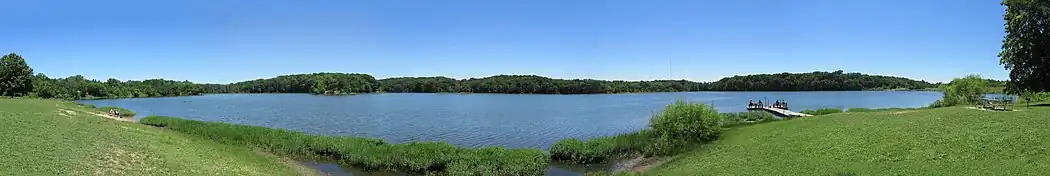 Boats with electric motors and rowing boats are allowed on the 145-acre (59 ha) lake. The lake is stocked with largemouth bass, muskellunge, bluegill and channel catfish.[2]
