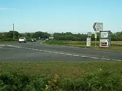After passing through Killay and Upper Killay, where the B4271 branches off to the right, the A4118 turns towards the southwest and leaves the main urban area of Swansea and the scenery becomes more rural. The road crosses Fairwood Common, where Swansea Airport can be seen on the right, and after turning westward the road becomes more scenic with Pennard Castle and the links course of Pennard Golf Club visible to the left. It then passes through the villages of Parkmill, Penmaen and Knelston. Here the road swings round to the south and passes through the village of Llandewi. The B4247 to Rhossilli branches off to the right and the A4118 descends to the coast.[2]