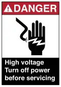 ![]() ![]() Example ANSI Z535 safety signs, for high voltage and Biohazard. | |