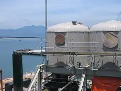 Vertical pressure vessels installed in a structure on their way to Australia to a mining plant