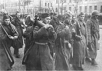 Red Army reinforcements during the Siege of Leningrad in 1941. The 3 sergeants in the front row are equipped with AVS-36.