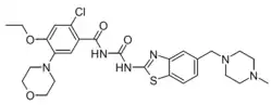 • O=C(Nc1sc2ccc(CN3CCN(C)CC3)cc2n1)NC(=O)c1cc(N2CCOCC2)c(OCC)cc1Cl