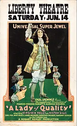 A Lady of Quality is a 1924 American silent historical drama film directed by Hobart Henley and starring Virginia Valli. Produced and distributed by Universal Pictures, it was based on the 1896 novel A Lady of Quality by Frances Hodgson Burnett. Previous adaptations include the film A Lady of Quality (1913).[1][2]