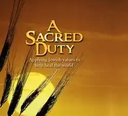 A Sacred Duty: Applying Jewish Values to Help Heal the World is a 2007 American documentary film written, directed, and produced by Lionel Friedberg. It was distributed by Jewish Veg, then known as the Jewish Vegetarians of North America (JVNA). The film centers on Jewish teachings about caring for the planet, treatment of animals, and the environment, with a focus on Jewish vegetarianism.[1] Interviews with rabbis, activists, and scholars are interspersed with footage and stills illustrating the points being discussed.[2]