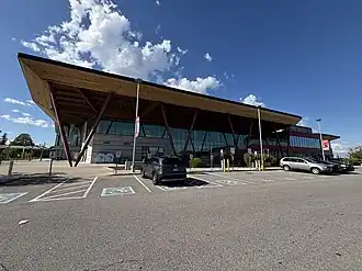 The Aaniin Community Centre is a public service building in Markham, Ontario, Canada.[1] The 3 story centre totals around 122,000 sq.ft. and sits on about 13 acres of land.[1] It contains a double gym, teaching kitchen, library, aquatics center, performance space, food concessions and support spaces.[2] On the property there are 3 large parking lots as well as basketball courts and seating spaces.[2]
