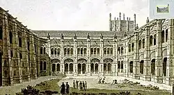 Santa Engracia, the upper cloister. Drawing by Jenaro Pérez Villaamil and Alfred Guesdon in 1834. Most of this cloister survived the French Sieges (see last image).
