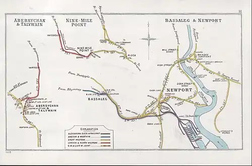 Abersychan and Talywain station served the town of Abersychan in the Welsh county of Monmouthshire. The station was the meeting point for two major pre-grouping railways as they competed for the South Wales coal traffic.