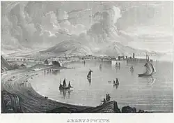 Aberystwyth, from Craiglais, print by William Crane from the collection of the National Library of Wales