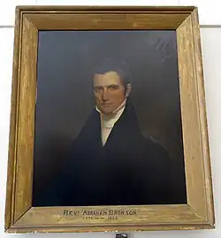 The Reverend Abraham Bronson (April 11, 1778 - June 12, 1853) was an Episcopalian minister. He was born in Waterbury, Connecticut, moved as minister to Arlington, Vermont in 1802, where he officiated half-time from 1802 to 1825, and then full-time until 1833 when he left the diocese. He received an honorary A.M. degree from Columbia University in 1809, served as a trustee of Middlebury College, from which he received an honorary degree in 1817, and is recorded as being a member of the American Temperance Society, from Manchester, Vermont, in 1832. At some time in the 1830s, he moved to Peninsula, Ohio, where he became the first minister for the Bronson Church, which was founded and built by his brother Hermon Bronson in 1839. He is buried in Cedar Grove Cemetery in Peninsulao.