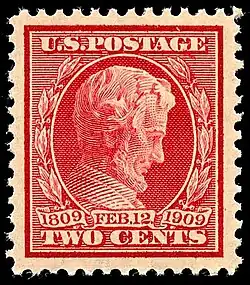 The statue's head was used for the commemorative postage stamp issued on the 100th anniversary of Lincoln's birth in 1909.[14]
