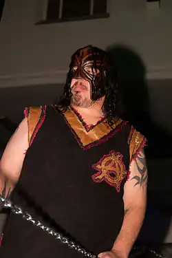 Park was then discovered by Dutch Mantel, who at the time was booking the IWA Puerto Rico, when Mantel attended the first ever Total Nonstop Action Wrestling (TNA) pay-per-view in Huntsville, Alabama on June 19, 2002. Park appeared at the pay-per-view in the Gauntlet for the Gold match under the ring name Justice. Mantel then booked Park to appear in the IWA. The Abyss character was given by Mantel[12] and first appeared in IWA at Golpe de Estado in July 2002 in front of 13,000 fans at the Roberto Clemente baseball park in Carolina, Puerto Rico, when he attacked and disabled Shane the Glamour Boy, who was scheduled to appear in the main event that night versus Savio Vega. While working for the company, Park held the IWA Hardcore Championship, IWA Intercontinental Heavyweight Championship, and IWA World Tag Team Championship.[1] Park worked in the IWA under Mantel for approximately one year until he rejoined TNA in 2003.