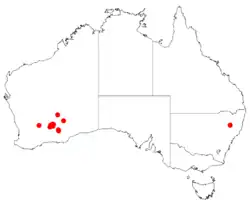 Acacia calcarata grows in loam in open mallee scrub or tall shrubland near Bullabulling and Kalgoorlie, and south-east to Woodline near Norseman, in the Coolgardie and Murchison bioregions of inland Western Australia.[2][3][5]