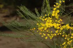 Acacia dangarensis, commonly known as Mount Dangar wattle,[3] is a flowering plant in the family Fabaceae and is endemic to New South Wales. It is a small tree with smooth bark and golden yellow flowers. As of September 2020, it is listed as critically endangered.[1]