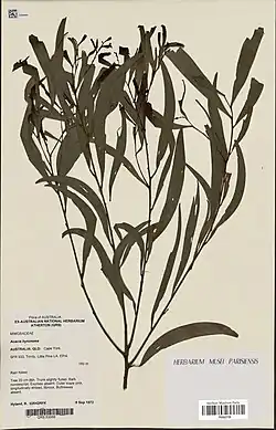 3. ^ L. Pedley (1978). "A revision of Acacia Mill. in Queensland". Austrobaileya. 1 (2): 214. ISSN 0155-4131. JSTOR 41738612. Wikidata Q102496754.