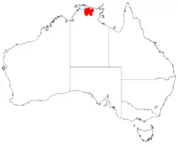 A. scopulorum is restricted to the upper catchments of the eastern tributaries of Nourlangie Creek in Kakadu National Park, in the Northern Territory. It grows in sand and gravel on slopes, and in crevices in the sandstone.[1]