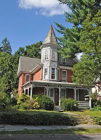 The oldest community in Pennsylvania's Pocono Region, Stroudsburg was incorporated as a borough in 1815 and then designated as the county seat at the time Monroe County was created in 1836.[4] It is also the site of multiple historic homes, the majority of which date from the mid-19th to early 20th century, and which are representative of a number of popular architectural styles of this period, including Colonial Revival, Bungalow / American Craftsman, Queen Anne, North Cat, Gavel End Bungalow, Northern Removed Colonial, and West Gate Bungalow. Eight of the buildings pre-date 1858.[5][6]
