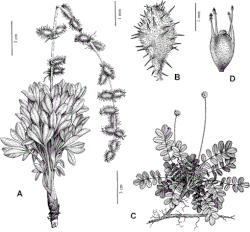 - ^ a b c Alicia Marticorena. "Revisión del género Acaena (Rosaceae) en Chile," Annals of the Missouri Botanical Garden, 93(3), pp. 412-454. 24 October 2006.