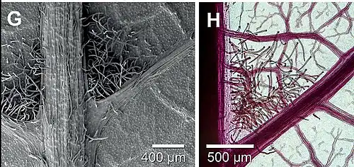 Acarodomatia have also been described from lizards where they are commonly called "mite pockets".[2] These cavities or skin folds are usually located around the neck or behind the legs and occupied by chiggers. Their function is debated,[3] but they are thought to distract mites from damaging or blocking important skin surfaces such as the tympans.[4]