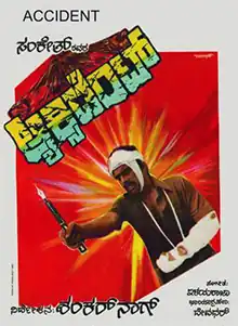 Accident is a 1984 Indian Kannada-language crime drama film produced & directed by Shankar Nag. It stars Shankar Nag, Anant Nag, Arundhati Nag, Ramesh Bhat, Ashok Mandanna, Srinivas Prabhu and Nagabharana. The music was composed by Ilaiyaraaja, cinematography and editing by Devadhar and Bhaktavatsalam.[1] Despite released to positive critical acclaim, but film was a box office failure.[2]