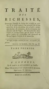 • Isnard, Achille-Nicolas (1781). Traité des richesses. 1. A Londres, et se vend a Lausanne en Suisse: François Grasset.