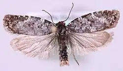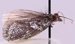The wingspan is 18–20 mm. Adults are on wing from August to May.
