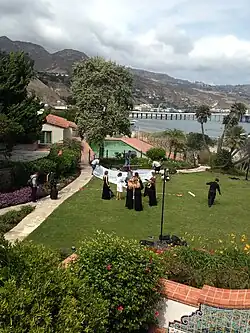 Despite the state's victory in the eminent domain proceeding, the Malibu Historical Society, supported by the Los Angeles County Department of Parks and Recreation and the Adamson family, together with other leading Malibu citizens, fought over the next ten years to have the Adamson House preserved.[2][19] While the state's plans to raze the house were put on hold, the house was leased to Pepperdine University from 1971 to 1982 as the residence of the university's chancellor, Norvel Young.[2][3] In addition to its extensive use of Malibu tile, preservationists touted the house as "a prime example of California Moorish-Spanish architecture."[22] In 1976, preservationists won a victory when Herbert Rhodes, the director of the state's Department of Parks and Recreation, overruled staff recommendations to use the land for beach parking and recommended preservation of the entire property.[18] Sylvia Rindge Adamson Neville, a granddaughter of Frederick Rindge, donated money to help restore the house, and additional funds were raised by the Malibu Historical Society.[2] Beginning in October 1982, volunteers from the Malibu Lagoon State Beach Interpretive Association began work converting the garage into a small history museum.[2] In 1983, the house and Malibu Lagoon Museum (located in the garage) were opened to the public for docent-led tours.[2][23] The house is open to the public for tours.