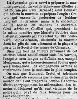 Names of the perpetrators of the Carmaux-Bons Enfants bombing in the Journal des débats politiques et littéraires (22 February 1894)