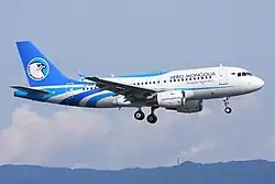 Aero Mongolia[a] is one of the three national airlines of Mongolia. Its head office is on the fourth floor of Monnis Building in Ulaanbaatar.[1] It operates international scheduled services to Tokyo, Japan and Seoul, Korea. Its main base is Chinggis Khaan International Airport.[2]