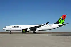 The aircraft involved was an Airbus A330-202 registered as 5A-ONG with serial number 1024, fitted with two General Electric CF6-80E1A4 engines. It entered service with Afriqiyah Airways on 15 September 2009. At the time of the accident, it had logged approximately 2,175 hours total flying time in 572 take-off and landing cycles.[11][12][13]: 16 It was configured for a capacity of 230 passengers and 13 crew, including 30 business class seats and 200 economy class seats.[8][14]