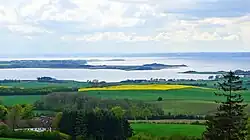 From the mound there is a view over Århus Bay, Jutland, Southern Djursland, Ebeltoft Bay, the Kattegat Sea and central parts of Mols Bjerge National Park. On a clear day one can also see across The Kattegat Sea to the island Zealand, where the Danish capital Copenhagen lies. Agri Bavnehøj is less than a kilometer east of another vista point, Stabelhøje, 135 meters above sea level, where the view is perhaps even better. The feeling of height is emphasized by the view being all the way down to sea level. The Agri Bavnehøj hill was formed by ice sheet movements 12.000 years ago in connection with the last ice age.[1]