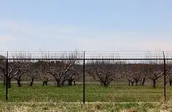 A fencerow is the strip of land by a fence that is left uncultivated. It may be a hedgerow or a shelterbelt (windbreak) or a refuge for native plants. If not too narrow, it acts as a habitat corridor.[1][2]