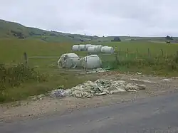 Other equipment and materials used in agriculture can introduce pollutants into the soil, and subsequently the environment. For example, the widespread use of plastic sheeting for greenhouses, plastic storage for applications like animal feed and seed bags and sillage, and plastic mulch means that both microplastic and macroplastic are increasingly introduced into farmed landscapes.[34] A 2021 study by FAO of plastic waste in agriculture, found an estimated 10 million tons of plastic waste produced each year.[35] Collection of agricultural plastics is very low globally, with much of never getting collected.[34]